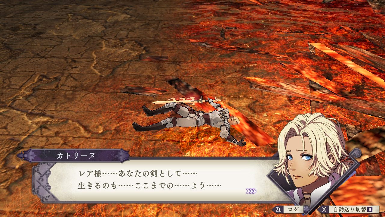 • カトリーヌ(CV : 松浦チエ)|ガルグ=マクの士官学校の卒業生で、セイロス騎士団に所属する騎士。“英雄の遺産”と呼ばれる伝説の武具のひとつ「雷霆(らいてい)」を使いこなす凄腕の剣士であり、騎士として大司教レアに忠誠を誓っている。