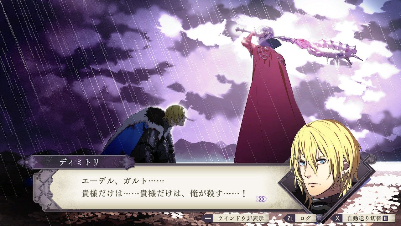 筆者はエーデルガルト編を楽しんだが、ネットではディミトリ編が特に評判が高いそうだ。1周目でお腹いっぱいだった筆者は、2周目を遊ぶ気力はなかったので、他のプレイヤーの YouTube 動画を見返すにとどまった。
